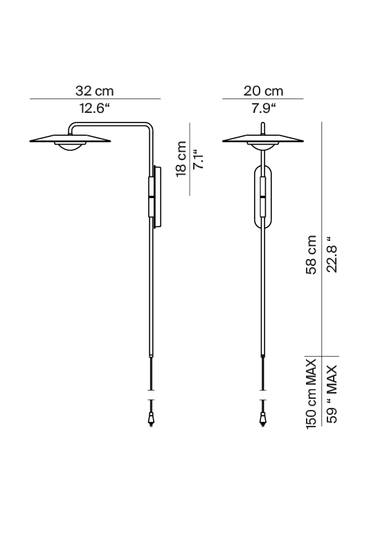 The Koinè family of lamps designed by Mandalaki Studio for Luceplan has grown. The new wall version with plug attachment has a structure composed of a slender stem (8 mm), anchored to the wall by means of a specific support for the reflector (Ø 20 cm) with its characteristic conical form. The light source, equipped with a lens in mineral glass, provides a wide cone of light with clearly defined contours. The on-off function is based on touch control using the stem.