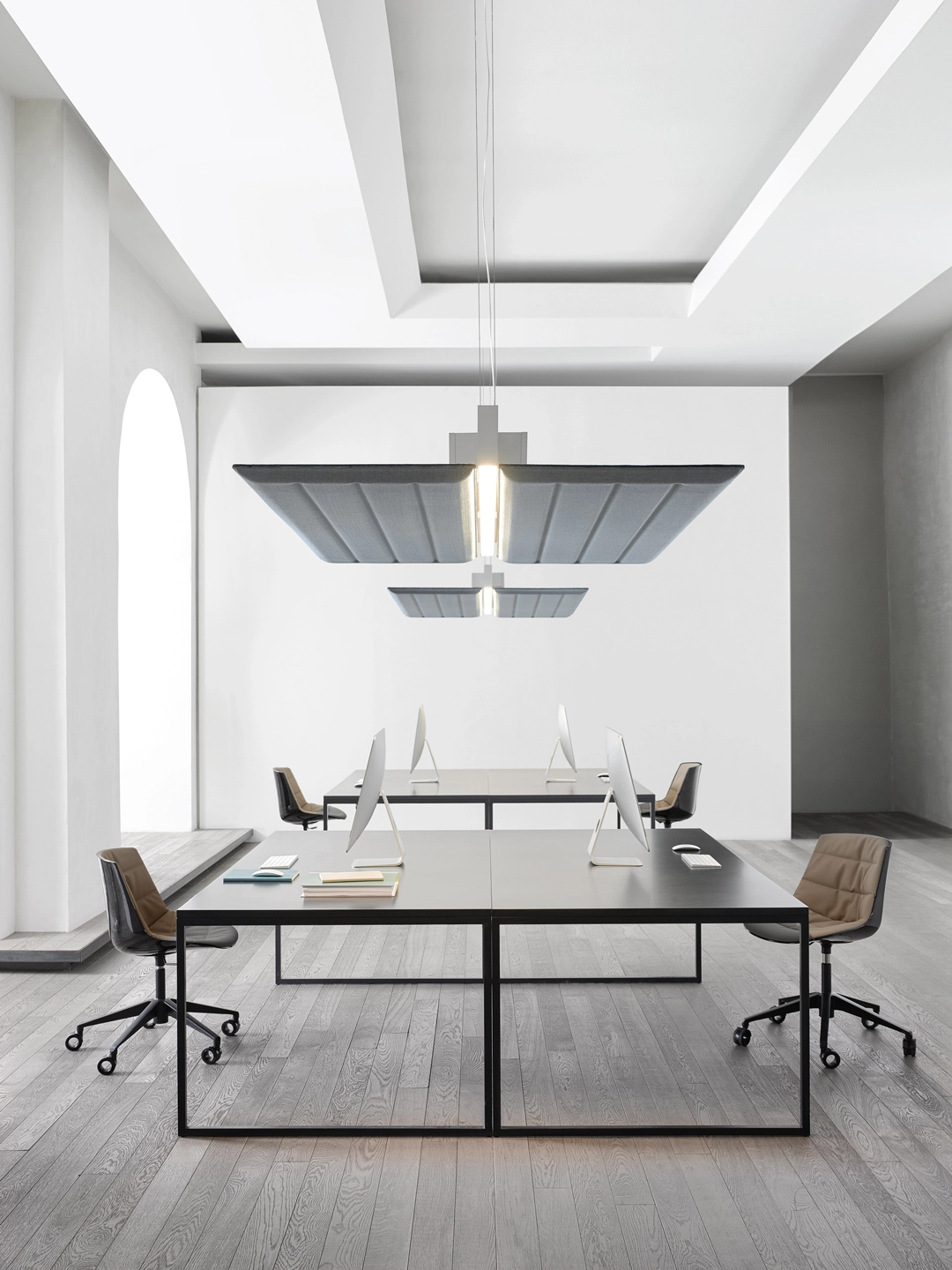 Since 2012, Luceplan has extensive experience in the creation of “all-in-one” solutions that provide superlative lighting performance, acoustic comfort and great design in any interiors