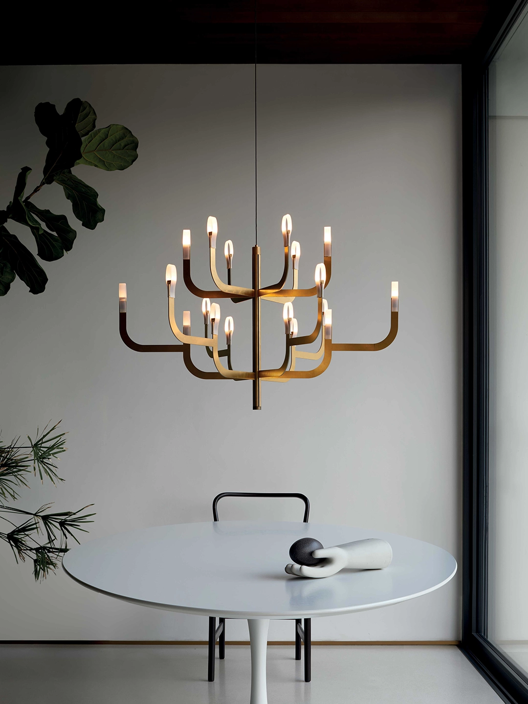 A chandelier of great emotional impact, based on the creative intuition of the designer, together with the research on materials, technology and design conducted by Luceplan. A new protagonist for living areas in the home, but also for contract applications. The size is impressive, yet the overall image is ethereal, like an organism floating in space.