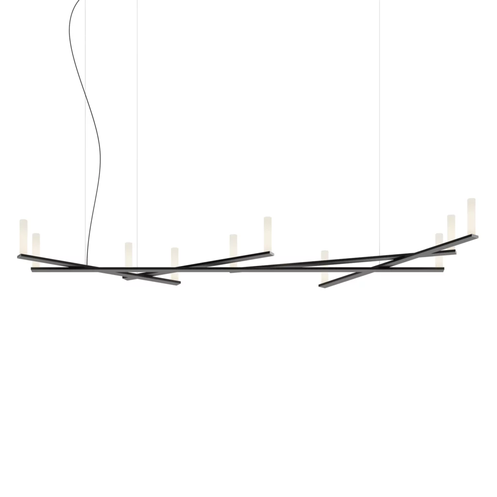 Dix Bougies ha una struttura tecnica costituita da un lungo estruso orizzontale in alluminio e da altri quattro elementi che si intersecano in modo asimmetrico, ma in perfetto equilibrio.